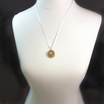 A truly beautiful Art Nouveau era locket for the whimsical antique jewelry lover! Don't miss this 10k yellow gold and diamond locket, of hand-made construction, circa early 20th century. The locket measures 24.36mm in diameter and is suspended from an oval ring bail. One side depicts repoussé irises bead-set at the center with one old European cut diamond within a star-shaped mounting. The reverse is hand engraved with the initials “TAG.” The diamond is SI1 in clarity, G-H in color, measures approximately 2.05 mm in diameter, and weighs approximately 0.03 carats. The locket is unmarked but has been entirely tested and guaranteed to be 10k yellow gold. This locket weighs 4.9 grams. I will be more than happy to email this piece's current certified and guaranteed retail replacement appraisal upon completion of sale, just ask! Questions are welcomed on Pendant-2690.