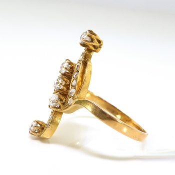 Antique Diamond Navette Ring Circa 1910 .73ct t.w. Old European Cut Rose Cut Diamond Cocktail Ring 18k Gold