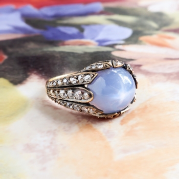 Antique Influenced Tulip 8.40ct t.w. Natural Lavender Blue Star Sapphire & Old European Cut Diamond Ring 18k Yellow GoldAntique Influenced Tulip 8.40ct t.w. Natural Lavender Blue Star Sapphire & Old European Cut Diamond Ring 18k Yellow GoldAntique Influenced Tulip 8.40ct t.w. Natural Lavender Blue Star Sapphire & Old European Cut Diamond Ring 18k Yellow GoldAntique Influenced Tulip 8.40ct t.w. Natural Lavender Blue Star Sapphire & Old European Cut Diamond Ring 18k Yellow GoldAntique Influenced Tulip 8.40ct t.w. Natural Lavender Blue Star Sapphire & Old European Cut Diamond Ring 18k Yellow GoldAntique Influenced Tulip 8.40ct t.w. Natural Lavender Blue Star Sapphire & Old European Cut Diamond Ring 18k Yellow GoldAntique Influenced Tulip 8.40ct t.w. Natural Lavender Blue Star Sapphire & Old European Cut Diamond Ring 18k Yellow GoldAntique Influenced Tulip 8.40ct t.w. Natural Lavender Blue Star Sapphire & Old European Cut Diamond Ring 18k Yellow GoldAntique Influenced Tulip 8.40ct t.w. Natural Lavender Blue Star Sapphire & Old European Cut Diamond Ring 18k Yellow Gold