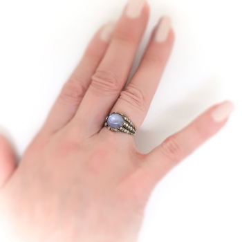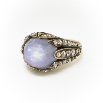 Jewelry Finds Archive Antique Influenced Tulip 8.40ct t.w. Natural Lavender Blue Star Sapphire & Old European Cut Diamond Ring 18k Yellow Gold
