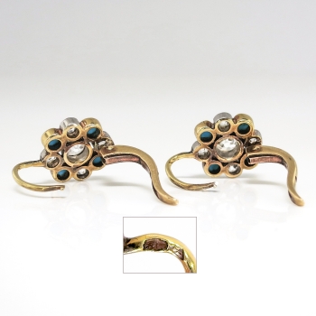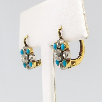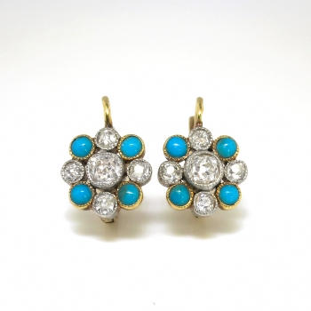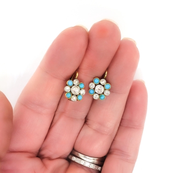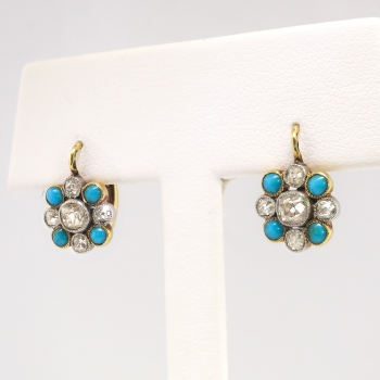 Jewelry Finds Archive Antique Victorian 1860's 1.16ct t.w. Natural Turquoise & Old Mine Cut Diamond Earrings Platinum 18k
