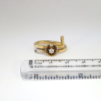 Antique Victorian 1890's .12ct Old Mine Cut Diamond Equestrian Horseshoe Riding Crop Ring 18k Platinum