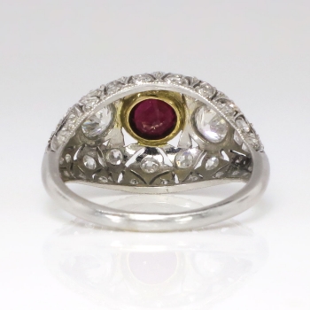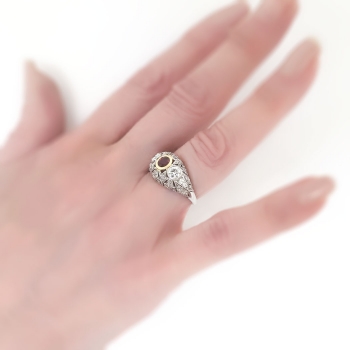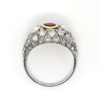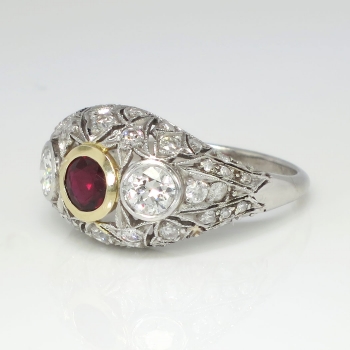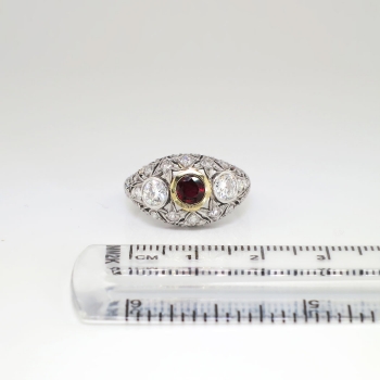 Art Deco 1930's 1.62ct t.w. Ruby & Diamond Filigree Platinum 18k Ring