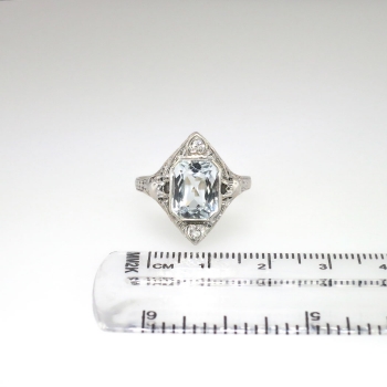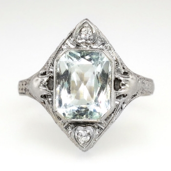 Jewelry Finds Archive Art Deco 1930's 3.02ct t.w. Aquamarine & Diamond Filigree Engraved Ring 14k