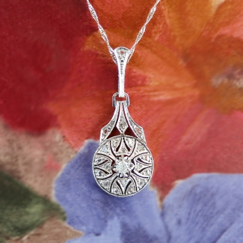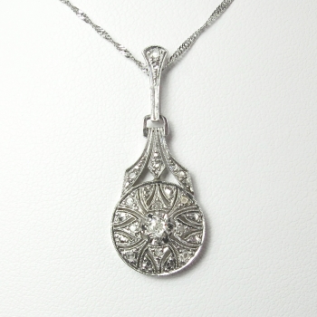 Jewelry Finds Archive Art Deco 1930's Vintage .11ct t.w. Filigree Old European Cut Diamond Pendant Necklace 18k White Gold Platinum
