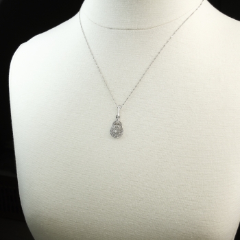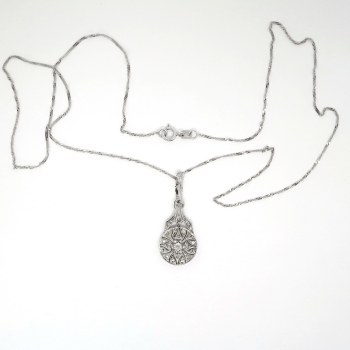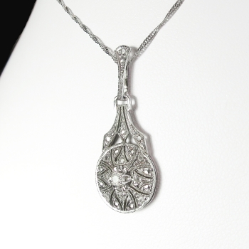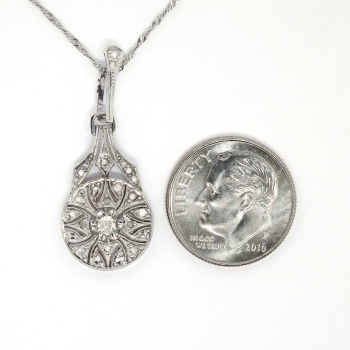 Art Deco 1930's Vintage .11ct t.w. Filigree Old European Cut Diamond Pendant Necklace 18k White Gold Platinum