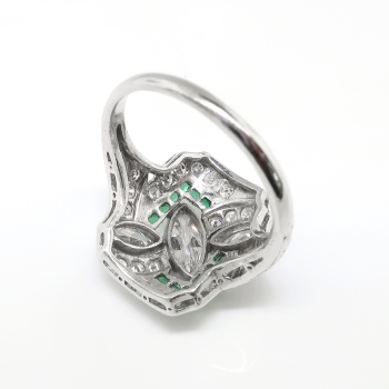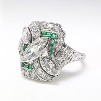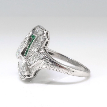 Jewelry FindsArchiveArt Deco Diamond Emerald Ring Circa 1930's 1.87ct t.w. Antique Marquise Cut Diamonds Hand Engraved Engagement Anniversary Ring Platinum