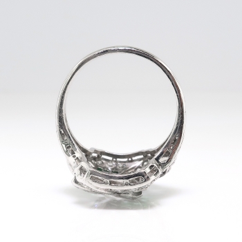 Art Deco Diamond Emerald Ring Circa 1930's 1.87ct t.w. Antique Marquise Cut Diamonds Hand Engraved Engagement Anniversary Ring Platinum