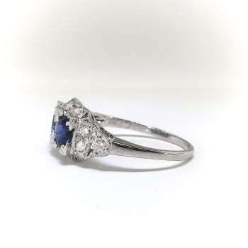 Jewelry Finds Jewelry Art Deco Jewelry Art Deco Toi et Moi Blue Sapphire and Diamond Filigree Ring Platinum
