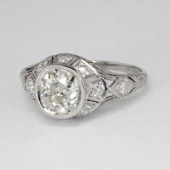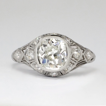 Jewelry Finds Archive Art Deco Vintage 1930's 2.14ct t.w. Bezel Set Old European Cut Diamond Engagement Anniversary Wedding Ring Platinum