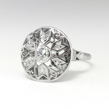 Jewelry Finds Archive Art Deco Vintage 1930's Old European Cut Diamond Filigree Engraved Engagement Wedding Anniversary Platinum Ring