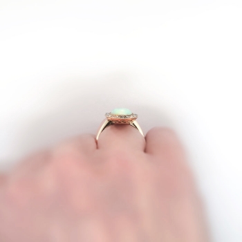 Art Nouveau 1900s 2ctw Opal & Rose Cut Diamond Halo Ring 10k