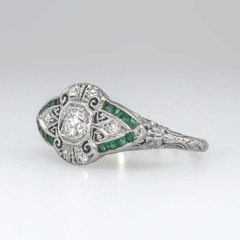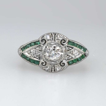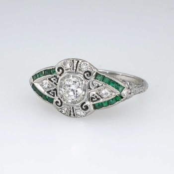 Jewelry Finds Archive Beautiful Rare 1930's Old European Cut Diamond & Emerald Engagement Ring 18k