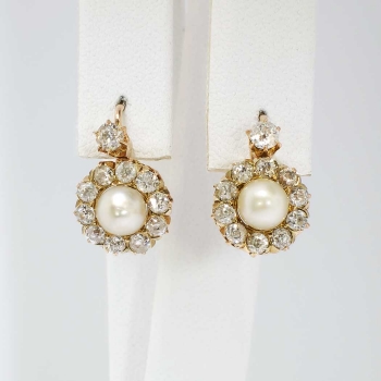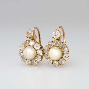 Jewelry Finds Archive Beautiful Victorian Old Mine Cut Diamond & Pearl Earrings 14k