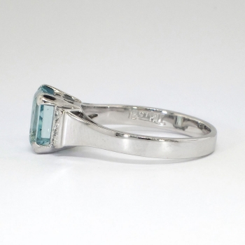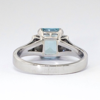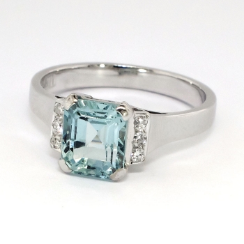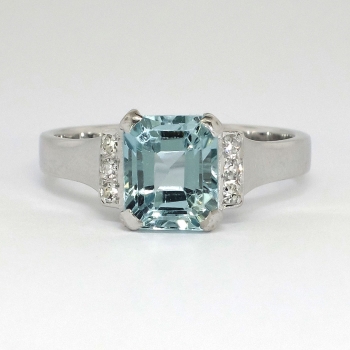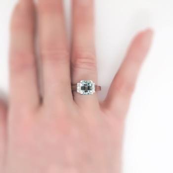 This is a timeless aquamarine and single cut diamond ring in excellent vintage condition from the early 1940's! This ring has US origin and is all original. A beautiful ring to wear on your wedding day or anytime! This ring features a central emerald cut sky blue-green natural aquamarine weighing 3.22cts and measuring approximately 9mm x 7.5mm x 6.5mm. That gemstone has subtle surface wear due to age but I can have it polished out for you and ready to ship within two weeks upon completion of sale, please inquire. It is safely set in a solid 18k white gold and palladium mixed mounting with .06ct t.w. in single cut accent diamonds (G-H color, VS1-VS2 clarity). A grand total gem and diamond weight being 3.28ct t.w.. This ring measures 8.9mm North to South, 11.9 mm East to West, and is raised 7.45mm off the finger. This ring weighs 5.8 grams, is currently a finger size 10.25, and my trusted jeweler can safely re-size this up or down four sizes, just ask! A replacement appraisal can be emailed upon completion of sale, just ask! Questions are welcomed on Ring-1454.