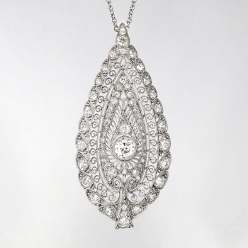 Jewelry Finds Archive Edwardian 1920's 1.66ct t.w. Old European Cut Diamond Filigree Platinum Pendant