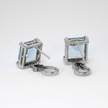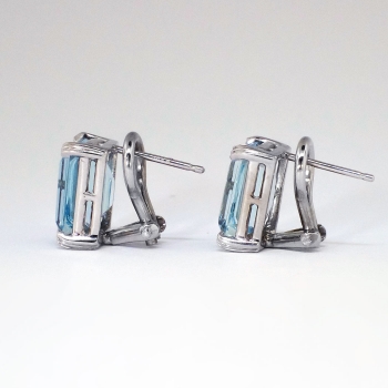 Elegant 5.80ct t.w. Emerald Cut Aquamarine Euro-Back Wedding Earrings 14k