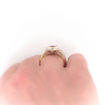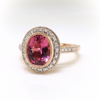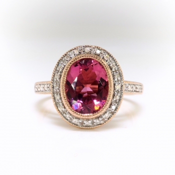 Jewelry FindsArchiveEstate Pink Tourmaline Diamond Halo Ring Circa 1990's 2.27ct t.w. Bead Set Milgrain Unique Birthstone Setting 14k Rose Gold White Gold