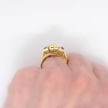 Jewelry Finds Archive Estate Vintage 1970's 7.19ct t.w. Natural Yellow & Blue Sapphire Cocktail Anniversary Birthstone Ring 18k Yellow Gold