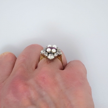 Jewelry Finds Archive Exquisite Edwardian Sapphire, Pearl & Old Mine Cut Diamond Cocktail Ring 14k