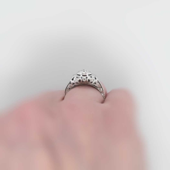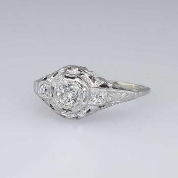 Fantastic Art Deco .31ctw Filigree Old European Cut Diamond Engagement Ring 18k