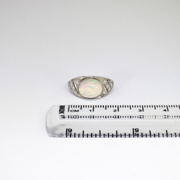 Gorgeous 3ct t.w. 1930's Opal & Diamond Filigree Platinum Ring