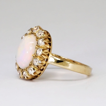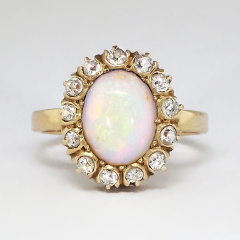 Jewelry Finds Archive Lovely 1900's 2ctw Opal & Old European Cut Diamond Halo Ring 14k