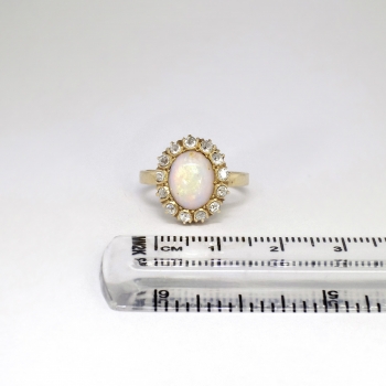 Lovely 1900's 2ctw Opal & Old European Cut Diamond Halo Ring 14k