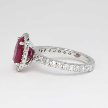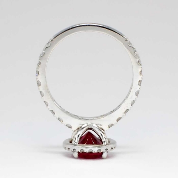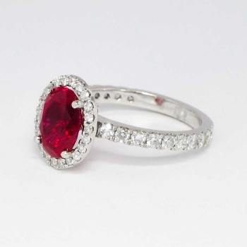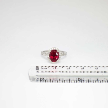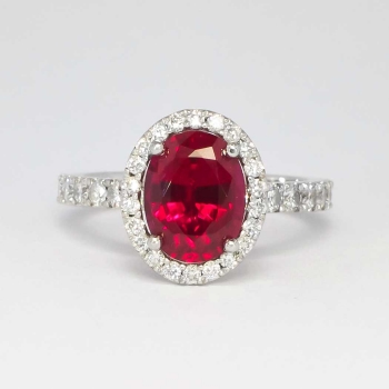 If you have never seen a natural museum quality spinel, this ring will be the perfect piece to add your collection! Spinel is generally highly sought after by gem connoisseurs, with red being the more desirable and valuable! This estate ring features a central rich, bright and PERFECT natural oval cut red spinel weighing 2.04cts. That gemstone is extremely eye clean and will trump any ruby ring out there! That glorious gemstone is adorned by 42 .01-.03ct round brilliant cut diamonds with the quality range of G-H color, VS2-SI1 clarity. A total diamond weight of .82ct t.w.. This ring has a grand total gem and diamond weight of approximately 2.86ct t.w.! What a great investment for someone who wants something different, classic, and a wonderful value! This ring measures 12.09mm North to South, 10.18mm East to West, and is raised 7.5mm off the finger. This ring is made entirely in platinum, weighs 5.4 grams, is a finger size 5.5 and my trusted jeweler can safely re-size this up or down three sizes, just ask! Questions are welcomed on Ring-1391.