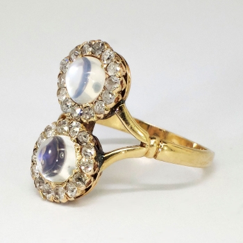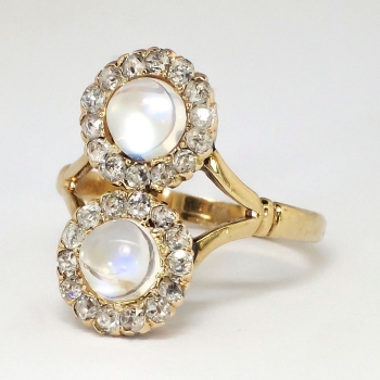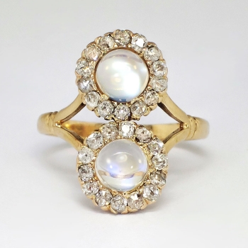 Jewelry Finds Archive Mystical Art Nouveau 2.50ct t.w. Double Moonstone & Old Mine Cut Diamond Ring 10k