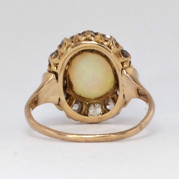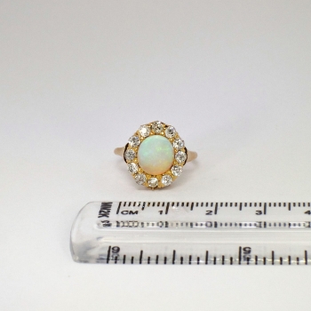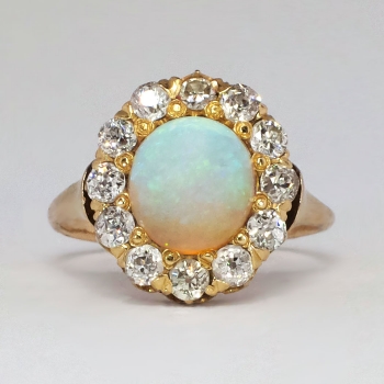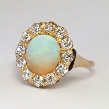 Jewelry Finds Archive Perfect 1890's 2.25ctw Opal & Old European Cut Diamond Halo Ring 14k