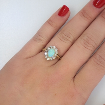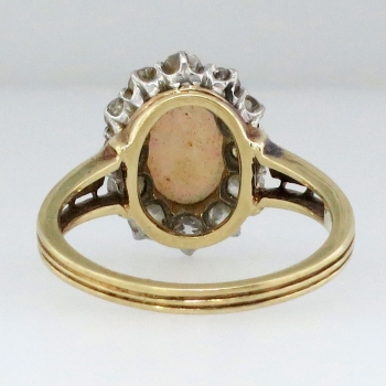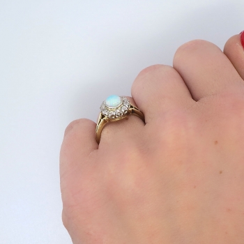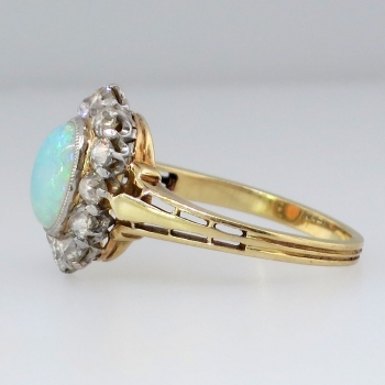 Pretty Victorian Opal & Old Mine Cut Diamond Ring 18k