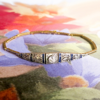 Jewelry Finds Archive Rare 1920's .43ct t.w. Old European Rose Cut Diamond & Sapphire Bracelet 18k/Platinum