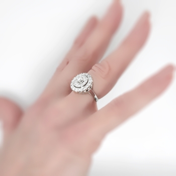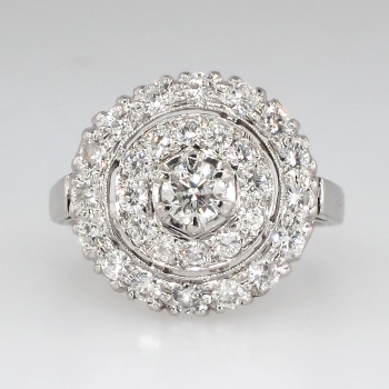 Jewelry Finds Archive Sparkling Retro Double Halo 1.50ctw Diamond Engagement Ring Platinum