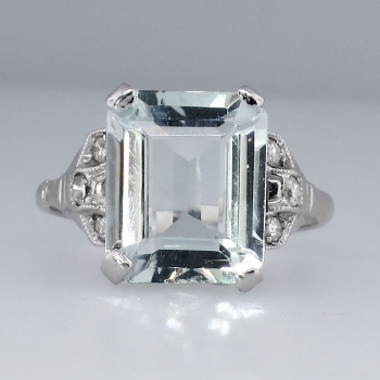 Jewelry Finds Archive Understated Elegance Art Deco Aquamarine & Diamond Cocktail Ring 18k