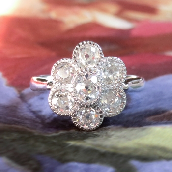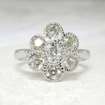 Jewelry Finds Archive Vintage 1.33ct t.w. Old Mine Cut Diamond Floral Milgrain Bezel Platinum Ring