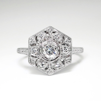 Jewelry Finds Archive Vintage Art Deco 1930's .29ct t.w. Old European Cut Diamond Filigree Engraved Engagement Ring Platinum