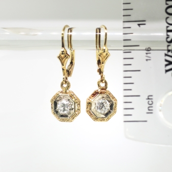 Vintage Art Deco 1930's .35ct t.w. Diamond Drop Two Tone Earrings 14k