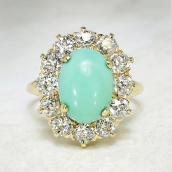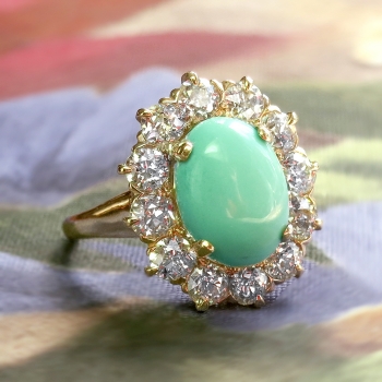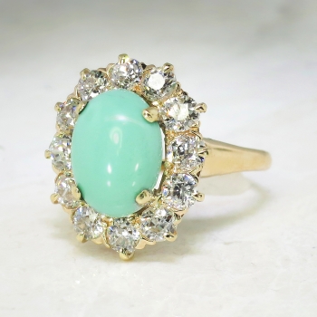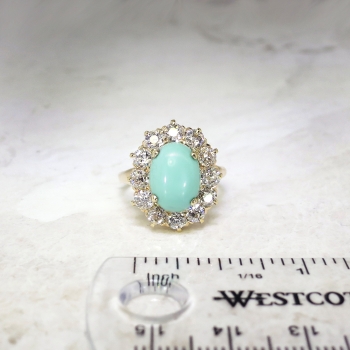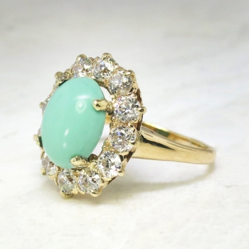 Jewelry Finds Archive Vintage Art Deco 1930's 4.89ct t.w. Turquoise & Old European Cut Diamond Cocktail Ring 14k