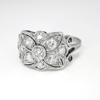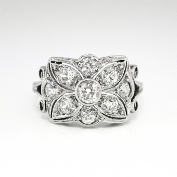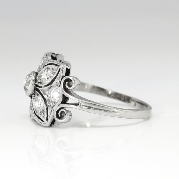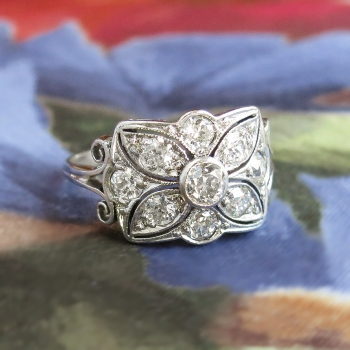 Jewelry Finds Archive Vintage Art Deco 1930's .67ct t.w. Old European Cut Floral Filigree Engagement Cocktail Anniversary Ring 14k Platinum