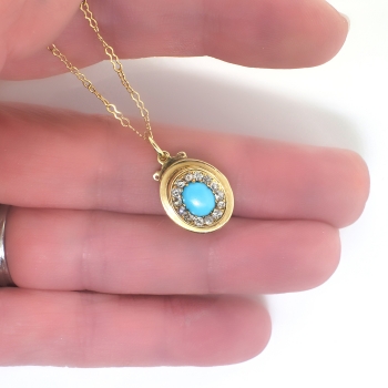 Jewelry Finds Archive Vintage Art Deco 1930's .67ct t.w. Turquoise & Old Mine Cut Diamond Pendant Necklace 14k Gold