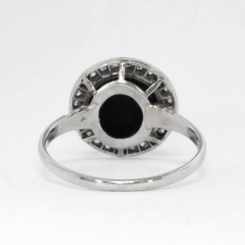 Vintage Art Deco 1930's Round Onyx .10ct t.w. Old Rose Cut Diamond Ring 14k