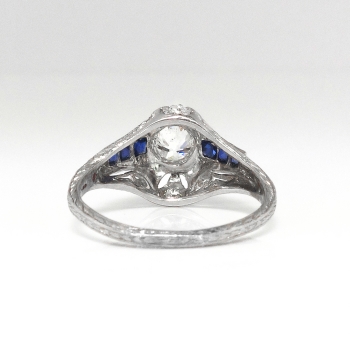 Jewelry Finds Archive Vintage Art Deco .58ct t.w. Old European Cut Diamond & Sapphire Engagement Ring Platinum