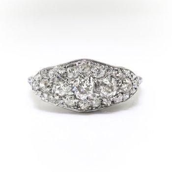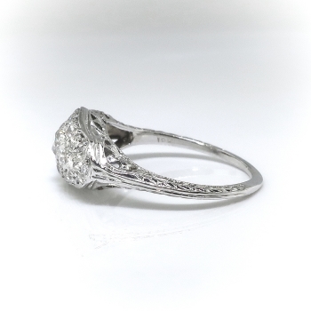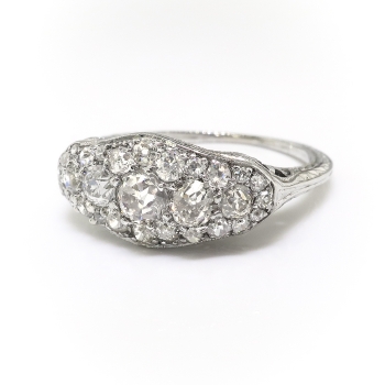 Vintage Diamond Cocktail Ring Circa 1920's 1.13ct t.w. Edwardian Art Deco Filigree Unique Statement Anniversary Ring 18k White Gold