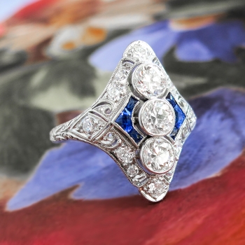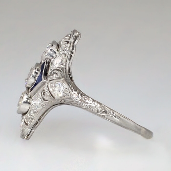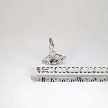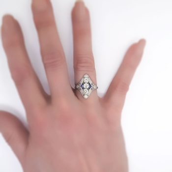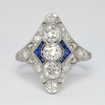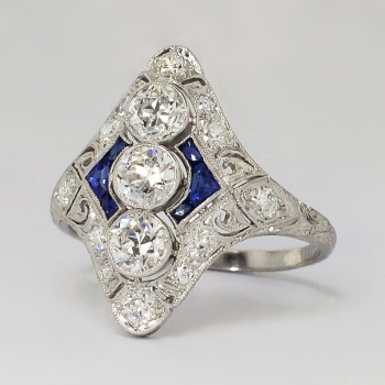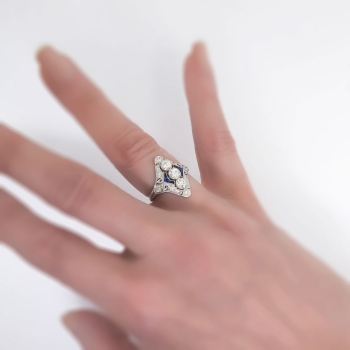 Jewelry FindsArchiveVintage Diamond Sapphire Ring Art Deco 1930's Old European Cut Diamond Blue Sapphire Filigree Cocktail Birthstone Anniversary Ring Platinum