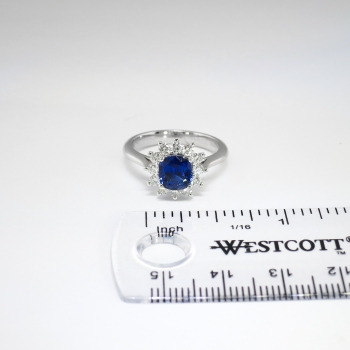 This ring is absolutely incredible!!! Photos truly cannot capture the beauty of this museum quality natural blue cushion cut sapphire and glittering diamond halo ring made in the style of Princess Diana! A classic and timeless heirloom that any woman will treasure for many years to come! This natural sapphire and diamond ring is in wonderful condition and will be the perfect ring to adorn ANY finger. The ring comprises a center, prong-set, square modified cushion cut sapphire, surrounded by twelve prong-set round brilliant cut diamonds, on a half-round shank which tapers at the head and which measures from .90mm to 2.97mm in width. The central natural sapphire measures approximately 6.55mm x 6.11mm x 4.17mm and weighs exactly 1.50cts. The surrounding 12 round brilliant cut diamonds have the quality grade range of F-G color, VS1-VS2 clarity, weigh .03cts to .04cts and have a combined diamond carat weight of approximately .43ct t.w.. This miraculous ring has a grand total diamond and gemstone weight of 1.93ct t.w.. This ring measures 12.09mm North to South, 12.02mm East to West, and is raised 6.3mm off the finger. This ring is made entirely in platinum and is stamped 'APEX S1.50 D0.43 PT950”. This magnificent ring weighs 6.5 grams, is currently a finger size 6.5 and my trusted jeweler can safely re-size this up or down two sizes free of charge, just ask (additional sizes up will be a flat $75.00 platinum fee, just ask!). I will be more than happy to email a certified and guaranteed retail replacement appraisal upon completion of sale, just ask! You can start a layaway for this piece through my Etsy shop with only 25% deposit, and you can take up to five additional months in payments! Message me to start your layaway TODAY! Questions are welcomed on Ring-1586.