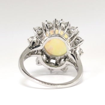 Jewelry Finds Archive Vintage Estate 1980's 6.62ct t.w. Solid Opal & Diamond Halo Ring 14k White Gold