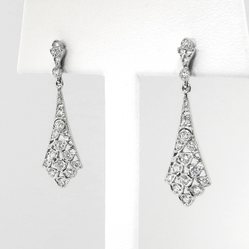Jewelry Finds Archive Vintage Estate 1990's .44ct t.w. Filigree Diamond 18k White Gold Drop Chandelier Wedding Earrings