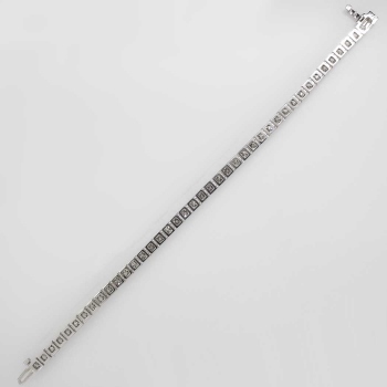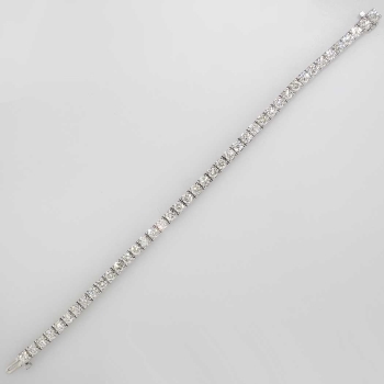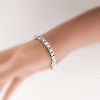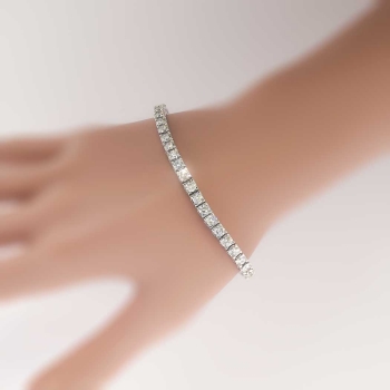 A tennis bracelet is like a little black dress - everyone needs one! A grand total carat weight of approximately 7.96ct t.w. set in this classic tennis style bracelet. It measures approximately 7 1/8" inches long, measures 4mm wide, and is made entirely in 14k white gold. This bracelet has a serial number of 37, and is in fantastic pre-owned condition (Circa 1990's). Magnificently prong-set within individual square links, each diamond displays a luminescent glow. With a color ranking of I-L and an overall clarity ranking of VS2-SI1. They shine and glitter wonderfully and will look great when worn alone or next to your favorite watch or stack with other bracelets for effortless style. The bracelet weighs 19.9 grams and will be that perfect elegant adornment for everyday or evening wear. A secure hidden tongue clasp will keep this bauble safely on your wrist. I have gotten this independently appraised from a Graduate Gemologist, Gemological Institute of America Certified Master Appraiser, National Association of Jewelry Appraisers and Independent Appraiser (the best in their field) and has been appraised at a conservative and remarkable $14,000.00! I will be more than happy to email this bracelet's current retail replacement appraisal upon completion of sale, just ask! Questions are welcomed on Bracelet-1141.