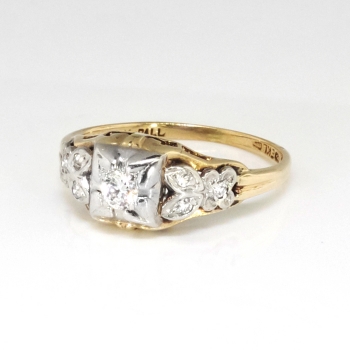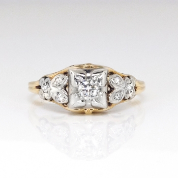 Jewelry Finds Archive Vintage Retro 1940's .11ct t.w. Old Transitional Cut Diamond Engagement Ring Two Tone 14k Palladium